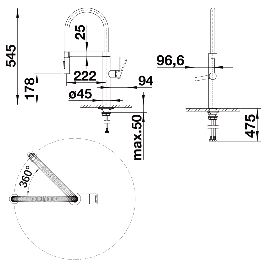 - Пружина из нержавеющей стали обеспечивает прекрасную свободу движения излива